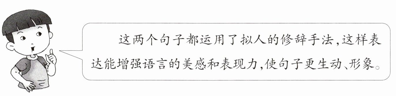这两个句子都运用了拟人的修辞手法,这样表达能增强语言的美感和表现力,使句子更生动、形象。