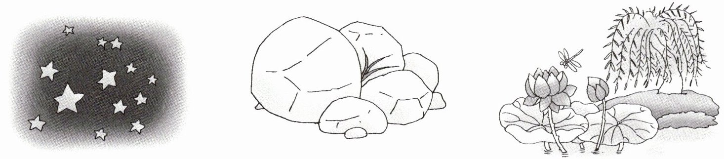 天上的星星一闪一闪地眨着眼睛。石缝中的小草偷偷地探出头来。夏天,荷花展开了笑脸。