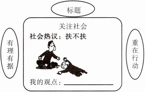(2)①扶。②理由:帮助他人、扶危济困是美德;扶是道德原则的要求;扶是具有社会责任感的表现;有些该做的事情,并不是我们自愿选择的,但我们仍然要为它们承担责任;做一个负责任的公民要求我们自觉承担责任。