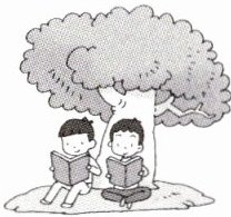 4. Two boys are (behind under in) the tree.