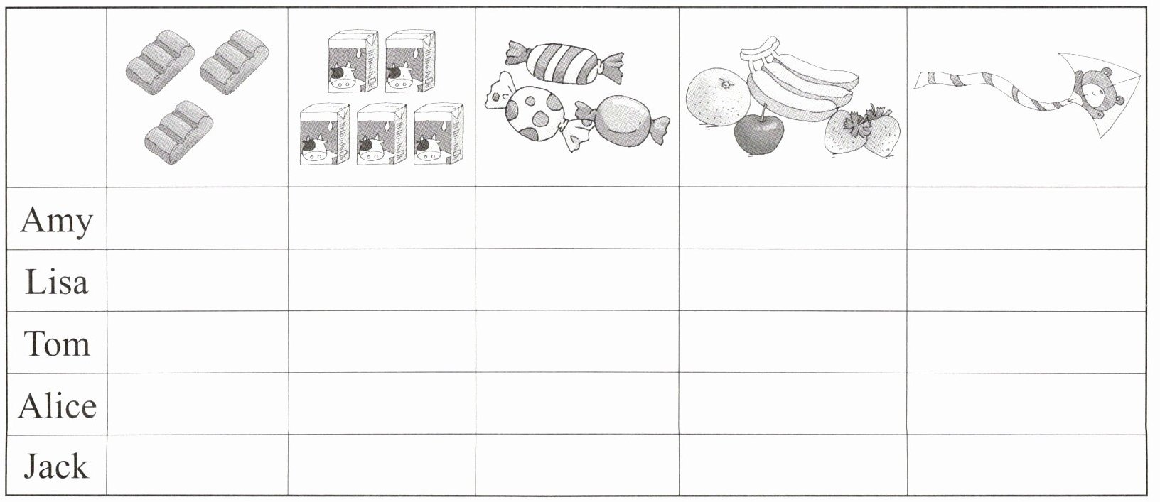 | | 巧克力 | 牛奶 | 糖果 | 水果 | 风筝 |