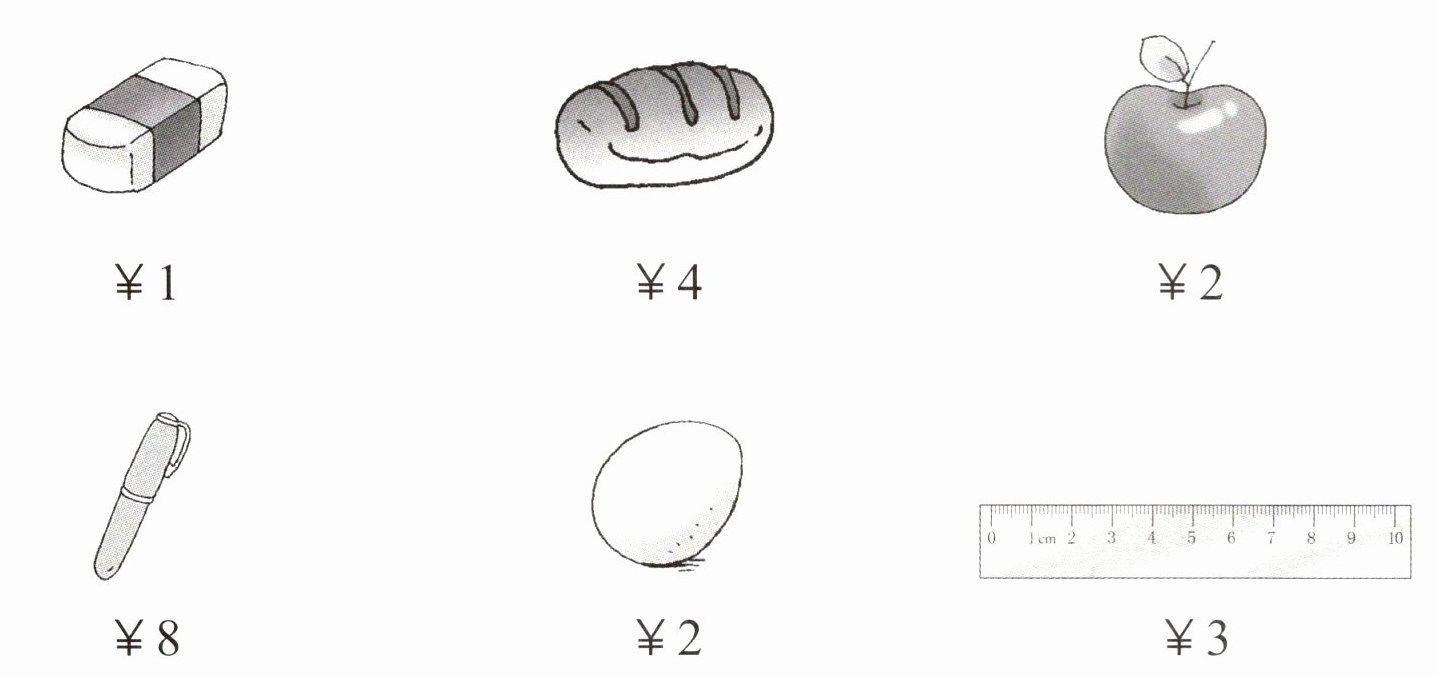 3. I'd like a ruler, five apples and eight eggs. They cost me ________ yuan.