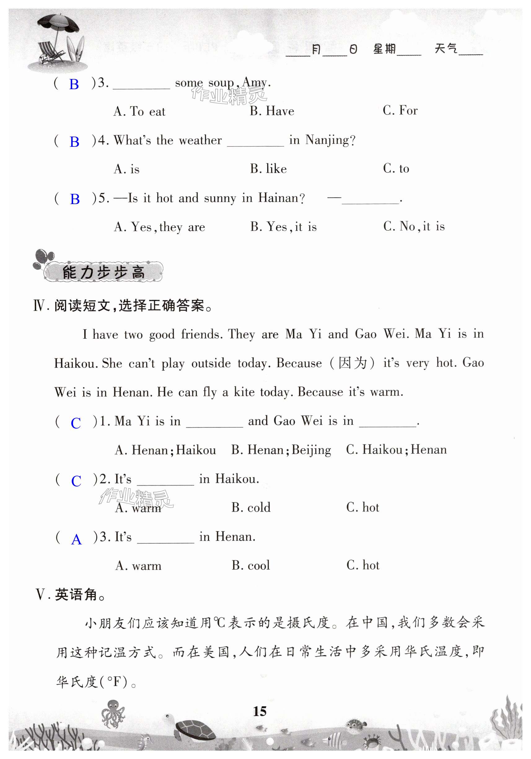 注:目前有些书本章节名称可能整理的还不是很完善,但都是按照顺序排列的,请同学们按照顺序仔细查找。练习册 2025年智趣暑假作业四年级英语新课标人教PEP版 答案主要是用来给同学们做完题方便对答案用的,请勿直接抄袭。
