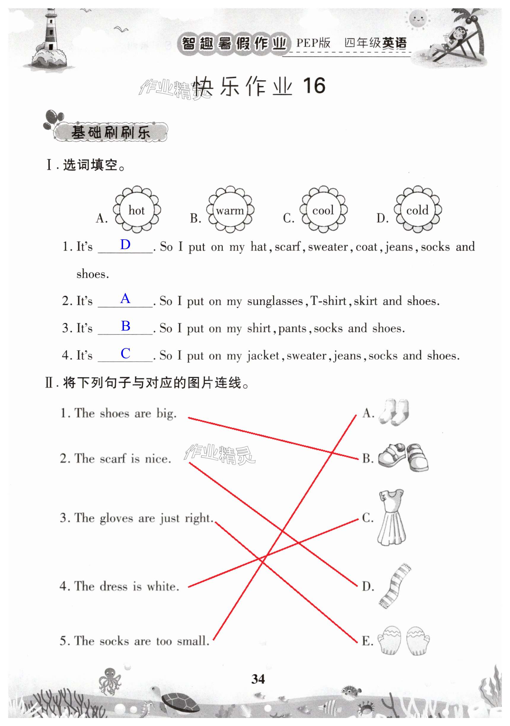 注:目前有些书本章节名称可能整理的还不是很完善,但都是按照顺序排列的,请同学们按照顺序仔细查找。练习册 2025年智趣暑假作业四年级英语新课标人教PEP版 答案主要是用来给同学们做完题方便对答案用的,请勿直接抄袭。