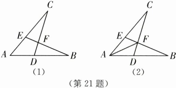 21. (2025·河北廊坊安次区期末)如图(1),已知$AB= AC,AD= AE$.