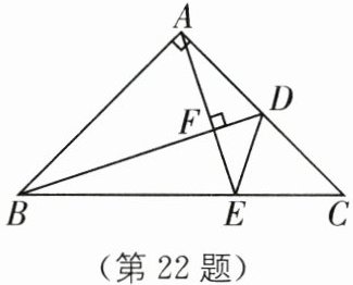 22. 如图,在$△ABC$中,$∠BAC= 90^{\circ}$,且$AB= AC,∠ABC= ∠ACB= 45^{\circ}$,点$D是AC$的中点,$AE⊥BD于点F$,交$BC于点E$,连接$DE$.求证:$∠ADB= ∠EDC$.