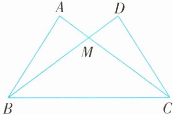 因为$BM = CM$,根据等腰三角形的性质“等边对等角”,可得$\angle ACB = \angle DBC$。