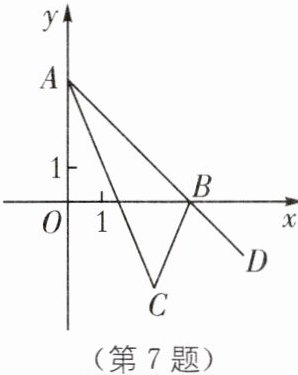 7. (2024·北京二中期中)如图,若点$A在y$轴上,点$B在x$轴上,$∠OAB的平分线交\triangle OAB外角∠OBD的平分线于点C$,则$∠C$的度数是(