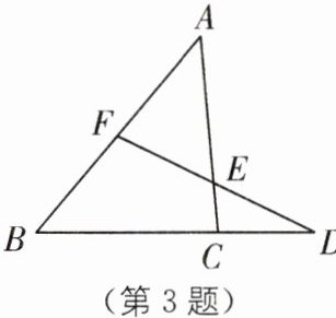 3. (2025·江西南昌期末)如图,在$\triangle ABC$中,$F$,$E分别是AB$,$AC$上的点,连接$FE并延长交BC的延长线于点D$,若$∠A = 45^{\circ}$,$∠B = 50^{\circ}$,$∠D = 26^{\circ}$,则$∠AED$的度数为______$^{\circ}$.
