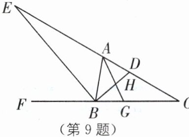 9. (2025·山西太原晋源区期末)如图,在$\triangle ABC$中,$∠ABC的平分线交AC于点D$,作$∠BAG = ∠C$,$∠ABF是\triangle ABC$的外角,$∠ABF的平分线交CA的延长线于点E$.