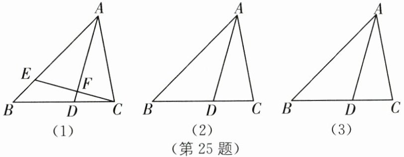 (2)如图(2),若$AB= 7,AC= 5,△ACD$的面积是10,求$△ABC$的面积;