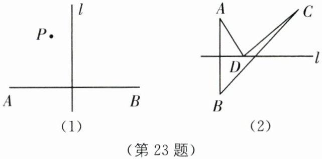 (2)如图(2),直线l是线段AB的垂直平分线,点C在直线l外,且与点A在直线l的同侧,点D是直线l上的任意一点,连接AD,BC,CD,试判断BC和$AD+CD$之间的大小关系,并说明理由.