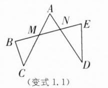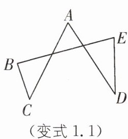 变式1.1 小慧一笔画成了如图所示的图形,若$∠A=60^{\circ }$,则$∠B+∠C+∠D+∠E$的度数为( ).