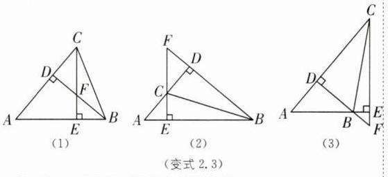 变式2.3 在$△ABC$中,$∠A= 50^{\circ }$,BD,CE是它的两条高,直线BD,CE交于点F,则$∠DFE= $____.