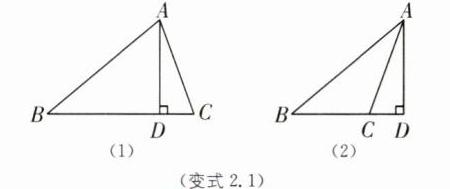 变式2.1 在$△ABC$中,AD为边BC上的高,$∠BAD= 50^{\circ },∠CAD= 20^{\circ }$,则$∠BAC$的度数为____.