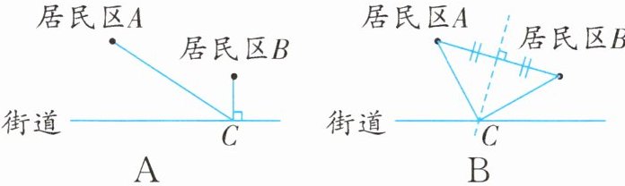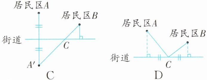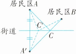 解析 如图,作点A关于街道的对称点A',连接A'B交街道所在直线于点C,