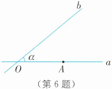 6. 如图,直线a,b交于点O,∠α = 40°,点A是直线a上的一个定点,点B在直线b上运动,且始终位于直线a的上方,若以点O,A,B为顶点的三角形是等腰三角形,则∠OAB = ______。