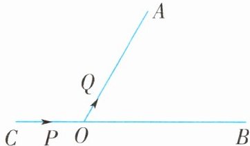 例2 (2024·江苏扬州宝应期中)如图,∠AOB = 60°,C是BO延长线上的一点,OC = 8 cm,动点P从点C出发沿CB以3 cm/s的速度移动,动点Q从点O出发沿OA以2 cm/s的速度移动,如果点P,Q同时出发,用t(s)表示移动的时间,当t为( )s时,△POQ是等腰三角形。