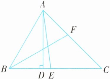 例5 (2025·安徽安庆期中)如图所示,$AD为\triangle ABC$的高,$AE$,$BF为\triangle ABC$的角平分线,若$\angle FBC = 30^{\circ}$,$\angle C = 40^{\circ}$.