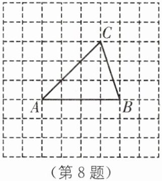8. 如图,正方形网格中的网格线交点称为格点.$\triangle ABC$的三个顶点为三个格点,如果点$P是图中异于点C$的格点,且以$A$,$B$,$P为顶点的三角形与\triangle ABC$全等,则符合条件的点$P$有(