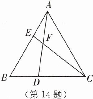 14. 如图,在△ABC中,∠BAC= ∠B= 60°,AB= AC,点D,E分别是边BC,AB所在直线上的动点,且BD= AE,AD与EC交于点F.