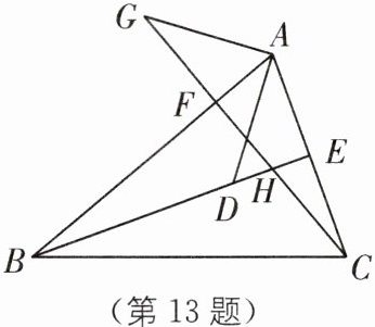 13. (2025·江苏盐城期末)如图,在△ABC中,BE,CF分别是AC,AB两边上的高,在BE上截取BD= AC,在CF的延长线上截取CG= AB,连接AD,AG.