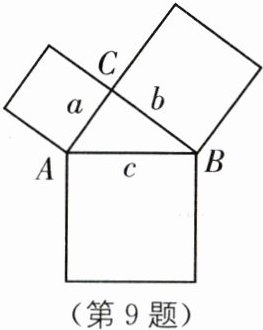 9.(2025·上海宝山区期末)根据整式与整式相乘,可以得到等式:$(x+y+z)^{2}= x^{2}+y^{2}+z^{2}+2xy+2xz+2yz$.试利用这个等式解决以下问题:如图,在$△ABC$中,$∠C= 90^{\circ }$,分别以AC,BC,AB为边向外侧作正方形.如果AC,BC,AB的长分别是a,b,c,且$a+b+c= 12,ab+ac+bc= 37$,那么这三个正方形的面积和是( ).