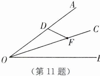 11. (2025·北京延庆区期末)如图,OC是∠AOB的平分线,点D在射线OA上,点E在射线OB上,点F在射线OC上,连接DF,EF.请你添加一个条件,使△OFD≌△OFE.小明同学写出以下条件:①OD= OE,②∠ODF= ∠OEF,③∠OFD= ∠OFE,④FD= FE,⑤∠ADF= ∠BEF,⑥∠DFC= ∠EFC.他认为:“添加以上条件中的任何一个,都可以使△OFD≌△OFE.”