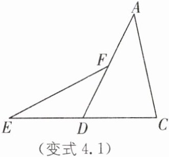 变式4.1 实验班原创 如图,在$\triangle ADC$中,$F为AD$的中点,$\angle DFE= \angle DAC$,且$EF= AC$,若$\triangle DEF的面积为2$,求$\triangle ADC$的面积.