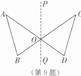 9. (2024·河北中考)如图,AD与BC交于点O,$△ABO和△CDO$关于直线PQ对称,点A,B的对称点分别是点C,D.下列不一定正确的是( ).