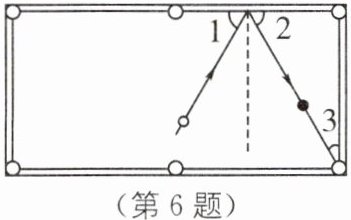 6. 如图,$∠3= 30^{\circ }$,为了使白球反弹后能将黑球直接撞入袋中,那么击打白球时,必须保证$∠1$的度数为(