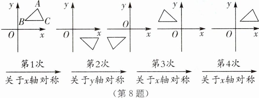 8. (2025·江苏扬州期末)如图,在平面直角坐标系中,对$△ABC$进行循环往复的轴对称变换,若原来点A坐标是$(a,b)$,则经过第2025次变换后所得的A点坐标是____.
