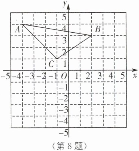 8. (2025·重庆合川区期末)如图,$△ABC的三个顶点的坐标分别为A(-4,4),B(2,3),C(-1,1)$.