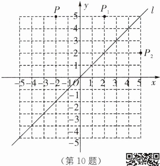 10. 中考新考法 新定义问题(2024·北京朝阳区陈经纶中学期中)在平面直角坐标系xOy中,直线l为第一、三象限角平分线,点P关于y轴的对称点称为P的一次反射点,记作$P_{1};P_{1}$关于直线l的对称点称为点P的二次反射点,记作$P_{2}$.例如,点$(-2,5)的一次反射点为(2,5)$,二次反射点为$(5,2)$.根据定义,