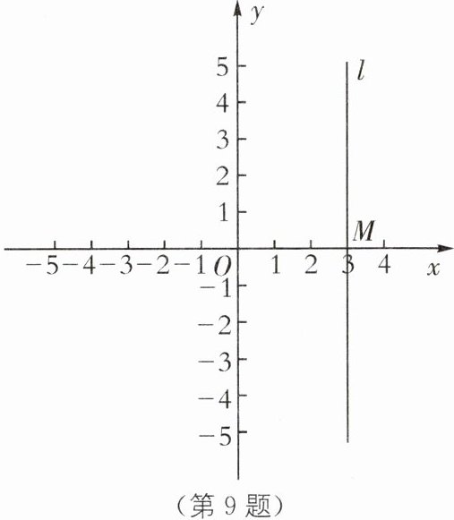 9. (2024·吉林长春南关区期末)如图,在平面直角坐标系中,直线l过点$M(3,0)$,且平行于y轴.