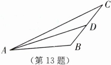 13. (2024·河南商丘期末)如图,在$\triangle ABC中(AC>AB)$,$AC = 2BC$,边$BC上的中线AD把\triangle ABC的周长分成55和45$两部分,求$AC和AB$的长。
