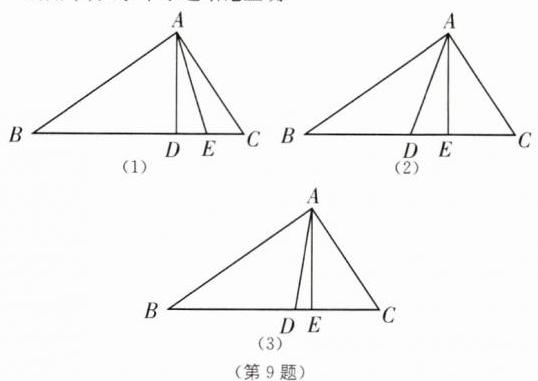9. (2025·北京朝阳区人大附中期中)在$\triangle ABC$中,$AB>AC$,$D$,$E是边BC$上的两点,且$BD<BE$,有下列四个推断: