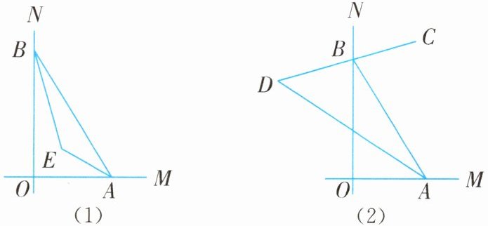 (2)如图(2),若$BC是\angle ABN$的平分线,$BC的反向延长线与\angle OAB的平分线交于点D$.