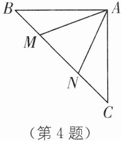4. 实验班原创 如图,在等腰直角三角形 ABC 中,$AB= AC,∠BAC= 90^{\circ }$,M,N 是 BC 上的两点,$∠MAN= 45^{\circ }$,试判断$BM+CN$与 MN 之间的大小关系.