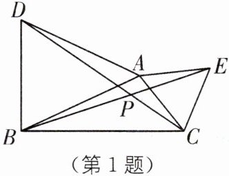 1. (2025·广西玉林期中)如图,在$△ABD和△AEC$中,$AD= AB,AE= AC,∠DAB= ∠EAC= 50^{\circ }$,CD,BE 相交于点 P.