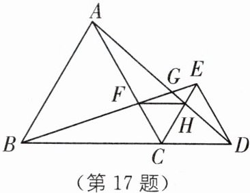 17. 一题多问如图,已知$△ABC与△CDE$都是等边三角形,点 B,C,D 在同一条直线上,AD与 BE 相交于点 G,BE 与 AC 相交于点 F,AD 与 CE 相交于点 H,连接 FH.求证: