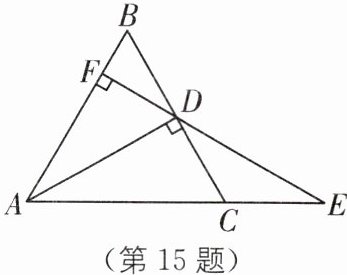 15. (2025·福建福州闽清期中)如图,在$△ABC$中,AD 垂直平分 BC,垂足为 D,过点 D 作$DF⊥AB$,垂足为 F,FD 的延长线与 AC 边的延长线交于点 E,$∠E= 30^{\circ }$.