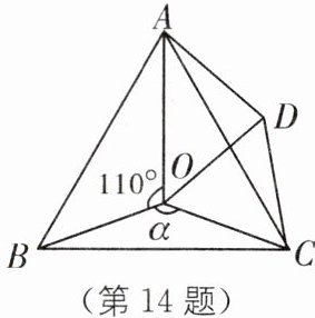 ∵∠AOB=110°,∠ADC=∠BOC=α,