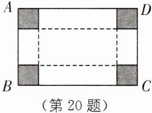 20. 教材P111习题T10·变式 (2025·福建厦门思明区期中)如图,一张长方形硬纸片$ABCD$,长$AD为(5a^{2} + 4b^{2})\text{m}$,宽$AB为6a^{4}\text{m}$,在它的四个角上分别剪去一个边长为$2a^{3}\text{m}$的小正方形(阴影部分所示),然后折成一个无盖的盒子,请你求出折成无盖盒子所用硬纸片的面积.