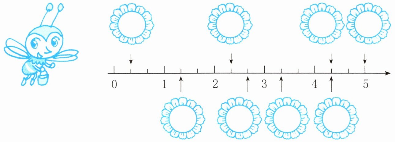 (2)蜜蜂浇水。(在直线上面的花朵里填上真分数或假分数,在直线下面的花朵里填上带分数)