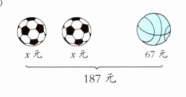(2) 解:$2x + 67 = 187$