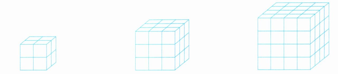 (1)下面每个大正方体各由几个小正方体组成?