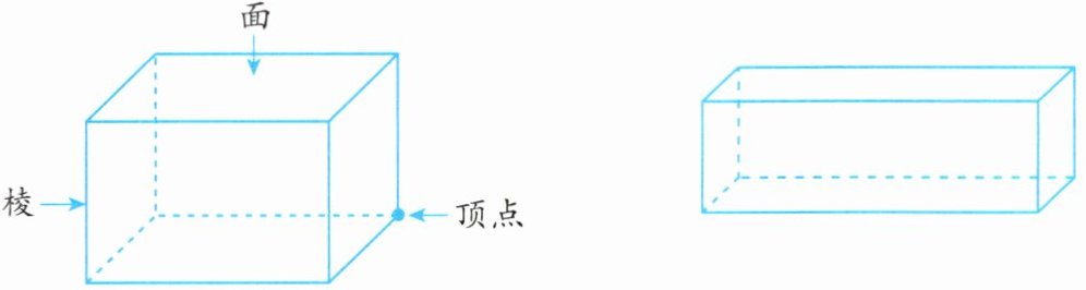 3.参考下面第一幅图,在第二幅图上写出长方体的一个顶点、一个面和一条棱。