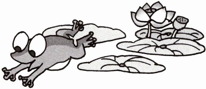画:(根据插图1内容,画面中应包含青蛙、荷叶、荷花,青蛙呈现捕捉害虫的动态姿态,如后腿蹬地、舌头伸出等)