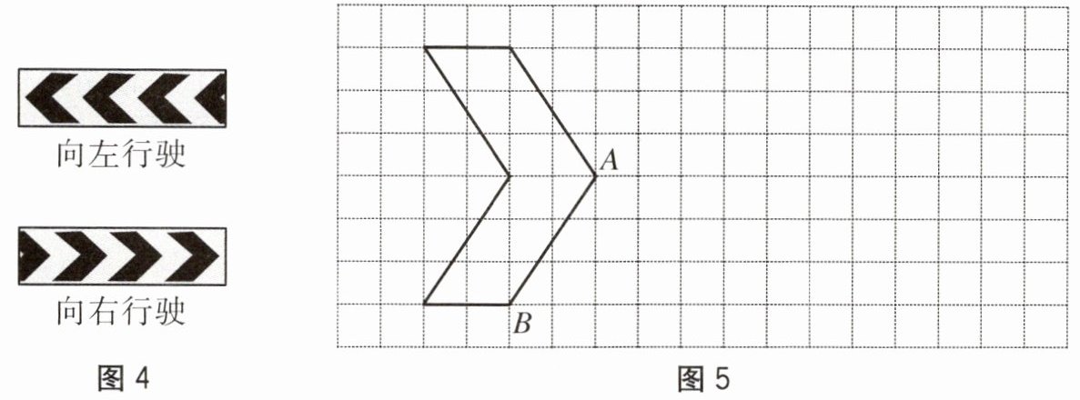 6. 我们通常在施工项目附近的地面上,看到图4中的向导标识,它是道路施工安全标志,表示车辆及行人向左或向右行驶,为其作出正确的向导。如果你是安全标志的设计人员,请利用图5中的方格图,解决下列问题: